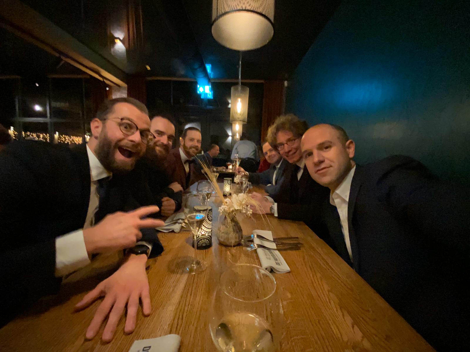 Nick voelt zich alweer snel in zijn element en als zelf aangesteld vaste fotograaf gaat hij direct helemaal los. Groepsfoto, portretten en foodfoto's, niks is voor deze man een brug te ver. Dion is als een leek nog uitgebreid de menukaart aan het besturen, terwijl de rest al in de startblokken zit om aan het verrassingsmenu met wijnarrangement te beginnen. Niet snel na de champagne is het al tijd voor de eerste gang en de daarbij behorende lekkere wijn. Niet veel later vliegen de eerste absurde verhalen al over de tafel. Gelukkig zitten we deze keer in een hoekje en niet midden in het restaurant en is Rik vandaag de chauffeur. De andere gasten in het restaurant kunnen rustig ademhalen. De jongen met de dronken basstem is vandaag dus niet aanwezig. Dion past zich ondertussen snel aan. Hij heeft zijn wankele beginfase overbrugt en begint ook al snel de ene na de andere lachwekkende anekdote te vertellen. De een nog vager dan dat de andere seksistisch is. Maar dat maakt niet uit, precies daarom zijn we samen.