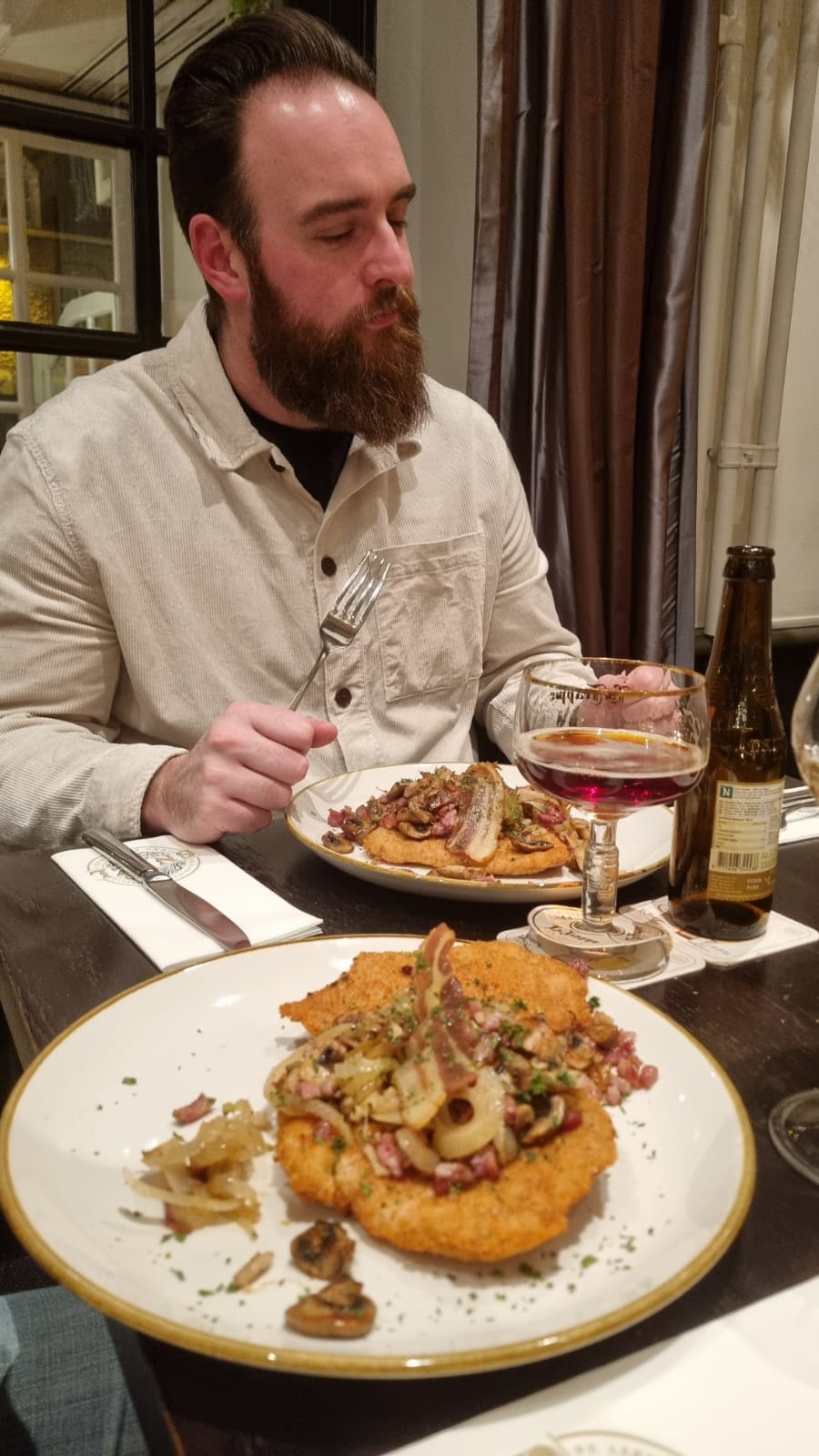 Bij deze schnitzel worden superlatieven georeerd, daar liep het bedienend personeel graag met een boog omheen.